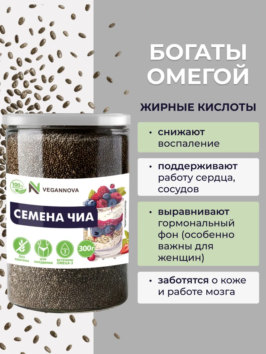 Семена чиа мы привозим из Южной Америки, и это настоящий суперфуд! Огромное количество кальция, много клетчатки и жирных кислот омега. Просто продукт-находка! Только представьте: всего 2 ч.л. семян чиа в день – это кладезь полезных веществ, и они закрывают огромный процент дневной потребности организма в витаминах и минералах.