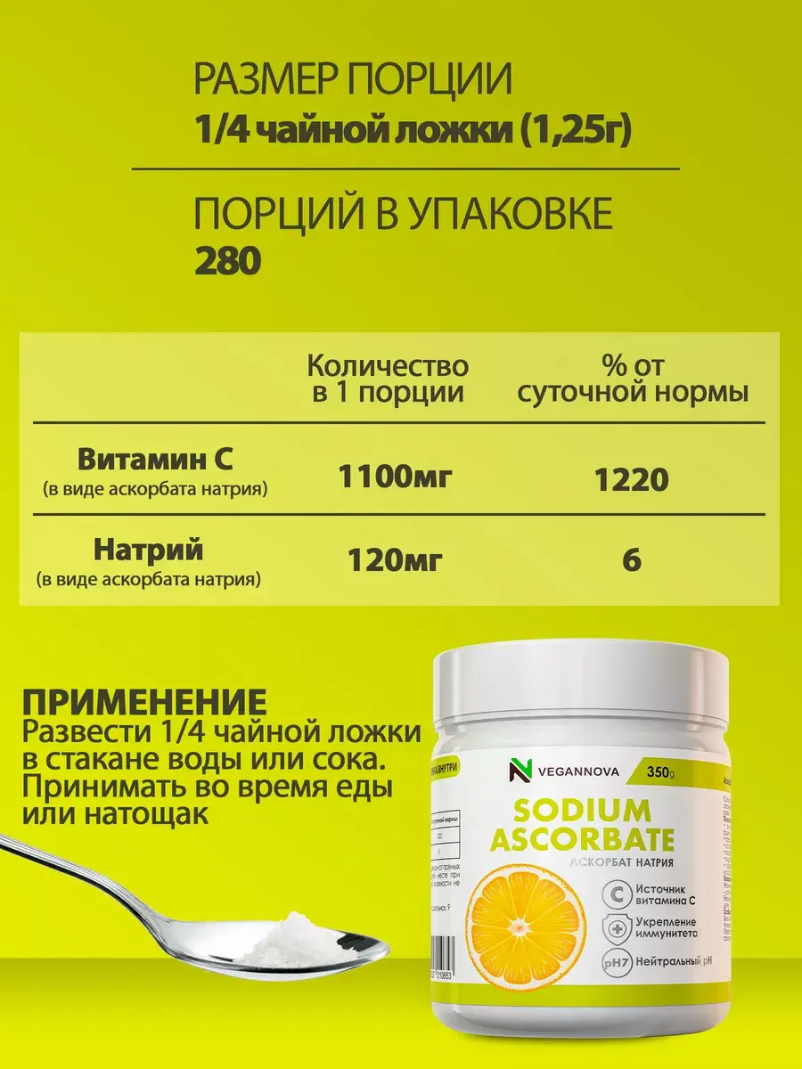 Излишки легко выводятся с мочой, и это тоже преимущество аскорбата: эта форма не оседает в организме кальцинатами в сосудах и камнями в почках при передозировке. Важный витамин для профилактики онкозаболеваний. В физиологии человека аскорбат натрия играет роль в синтезе коллагена, который необходим для здоровья кожи, сосудов, костей и соединительных тканей.