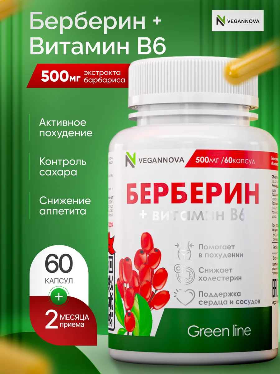 Для лучшего усвоения мы добавили к нему витамин В6. Витамин В6 сам по себе благоприятен для пищеварения, налаживания обменных процессов, их ускорения. А вместе с берберином это максимальная польза!