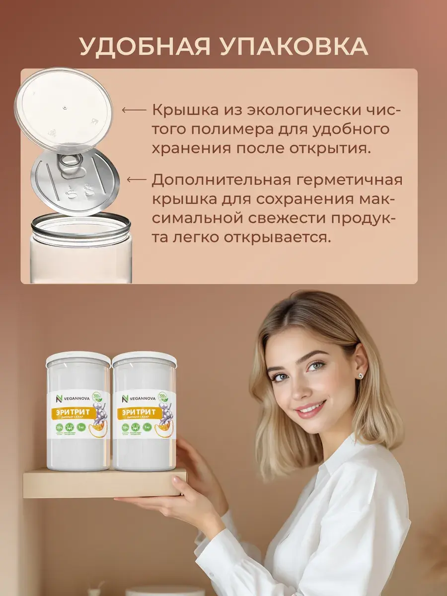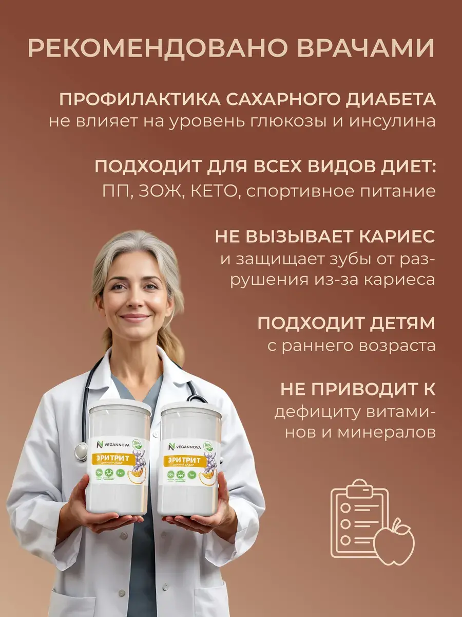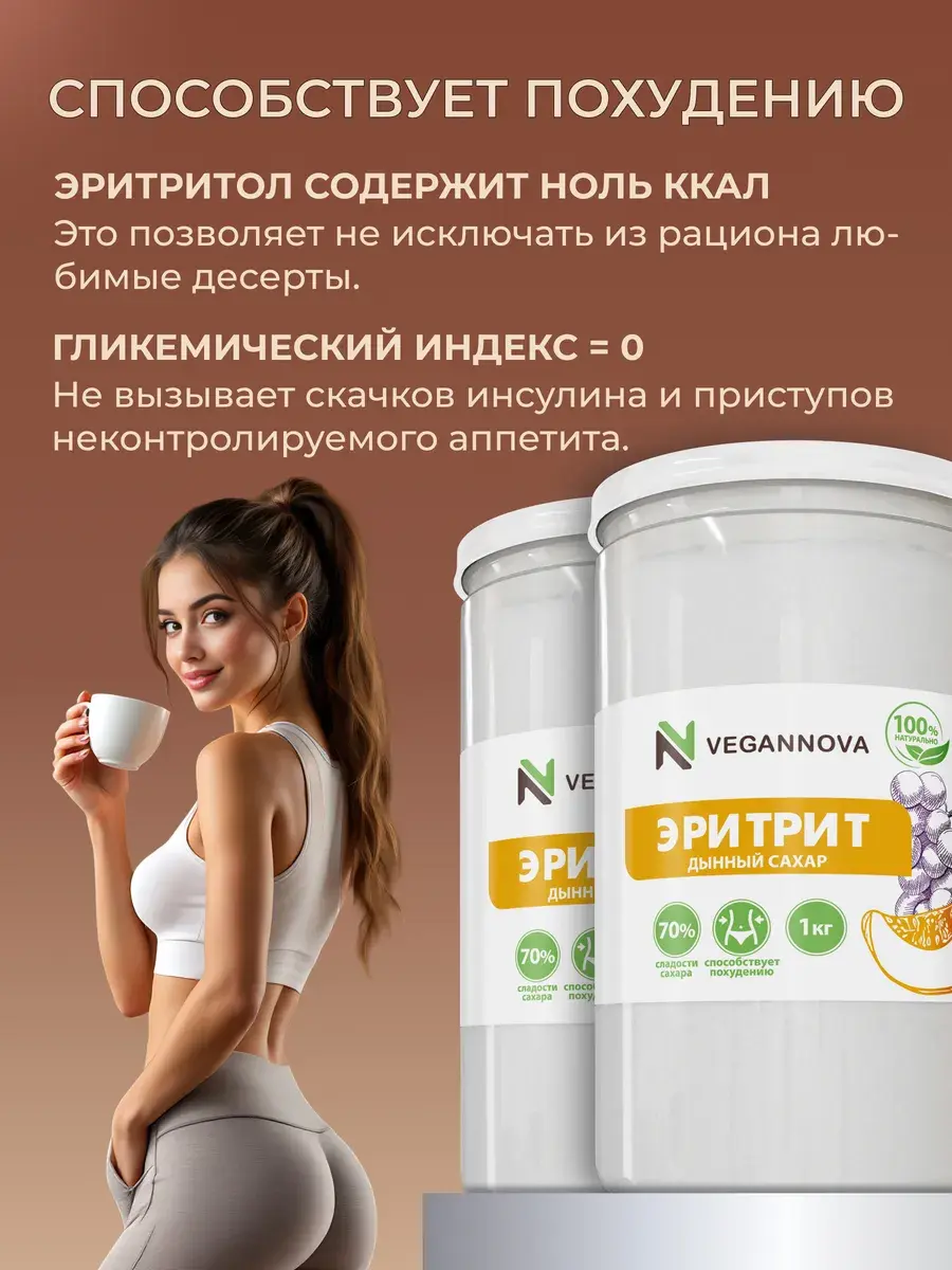 Натуральный сахарозаменитель из дыни, сливы, винограда, кукурузы. Его особенность в том, что это деликатная сладость: примерно 70% от уровня сладости сахара. Он не гипер-сладкий, как синтетические заменители, популярные сегодня. А ещё эритрит: