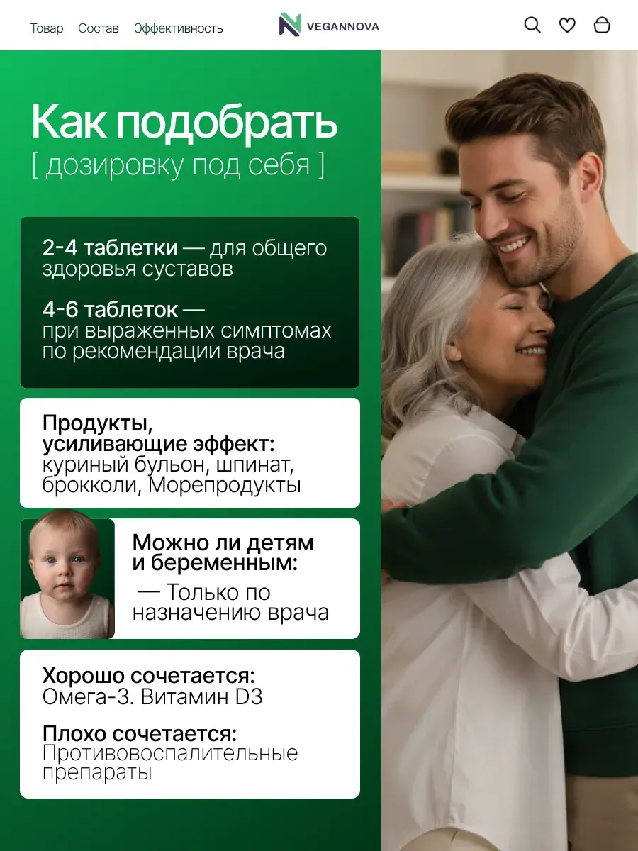Поддержка суставов: глюкозамин и хондроитин способствуют восстановлению и защите суставного хряща, что особенно важно для людей, активно занимающихся спортом или имеющих повышенные нагрузки на опорно-двигательный аппарат.
