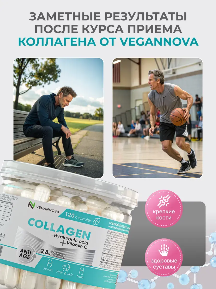 Это натуральный говяжий пептидный коллаген 1 и 3 типов (микс) с гиалуроновой кислотой и витамином С для лучшего усвоения. Особенность всех коллагенов VeganNova в том, что они низкомолекулярные, а значит, обладают максимальной усвояемостью. Это самый эффективный вариант коллагена, когда он в результате гидролиза (весь коллаген VeganNova – гидролизованный!) расщеплён до мельчайших частиц.