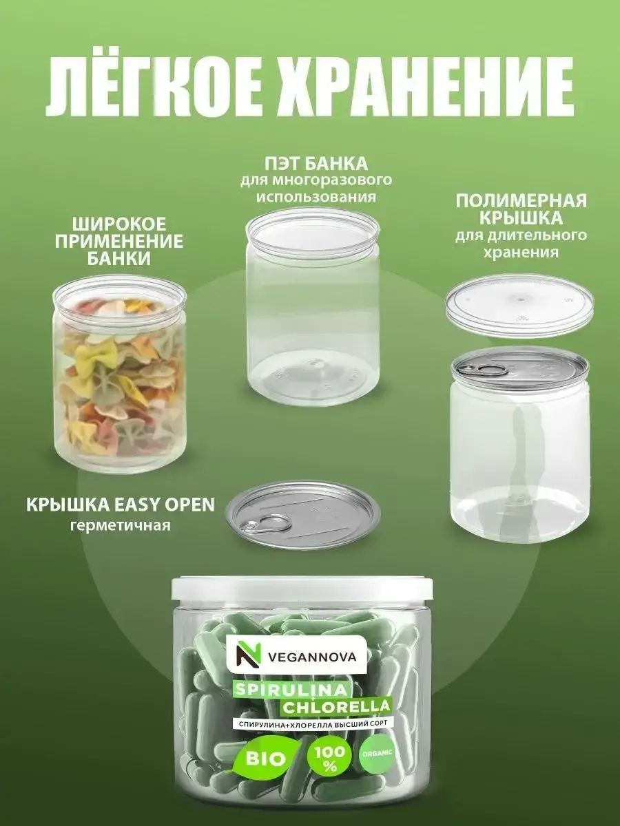 Спирулина и хлорелла VeganNova представлены как в таблетках, так и в капсулах. Выберите тот формат, который удобен именно вам! По сути, это один и тот же продукт, просто в разных формах.