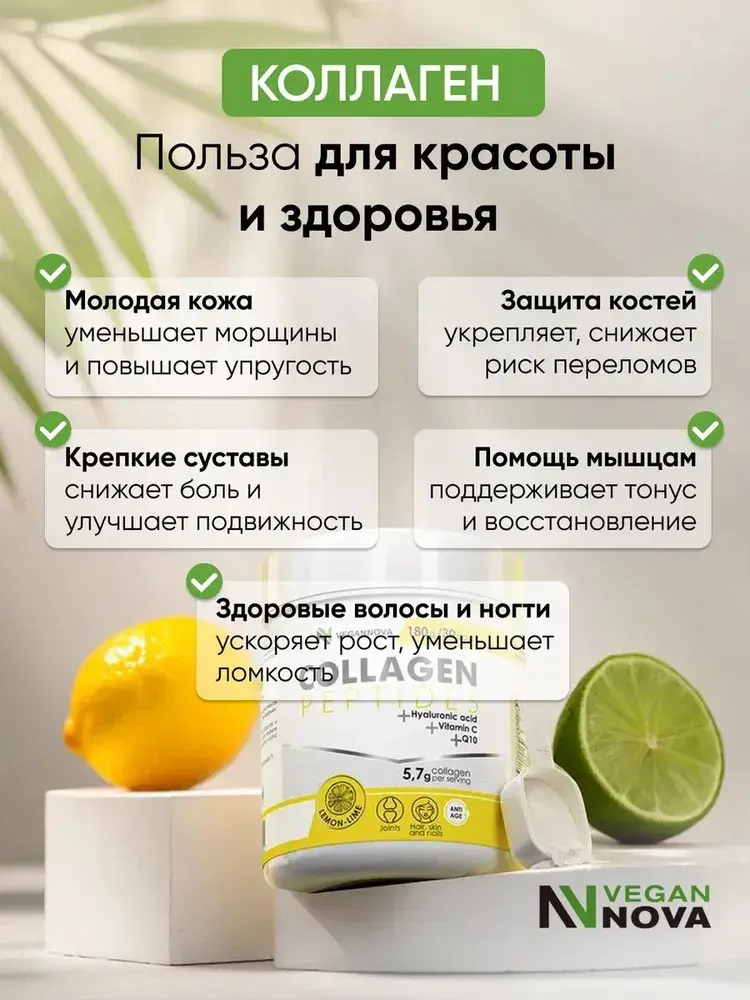 Витамин C в продукте помогает организму эффективнее использовать поступающий коллаген, обеспечивая его более полное включение в ткани.