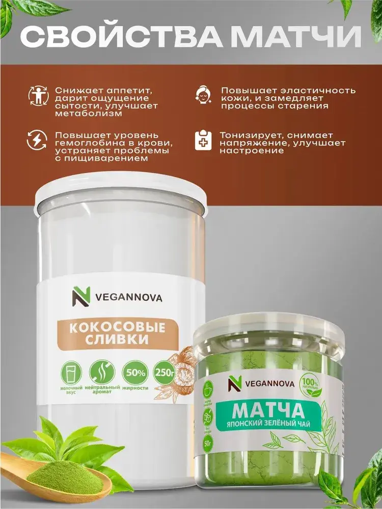 Чай матча и сухие кокосовые сливки – это великолепный набор для приготовления напитка матча-латте.