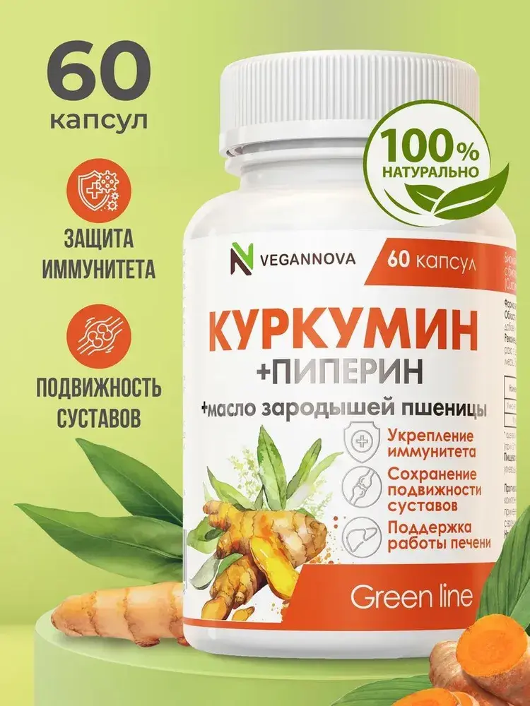Роль пиперина в составе: это активный компонент чёрного перца, который играет важную роль в усвоении куркумина. Сам по себе куркумин плохо усваивается организмом, но пиперин увеличивает его биодоступность, и куркумин лучше и быстрее начинает действовать. Благодаря пиперину, куркумин может более эффективно защищать организм и приносить максимальную пользу.