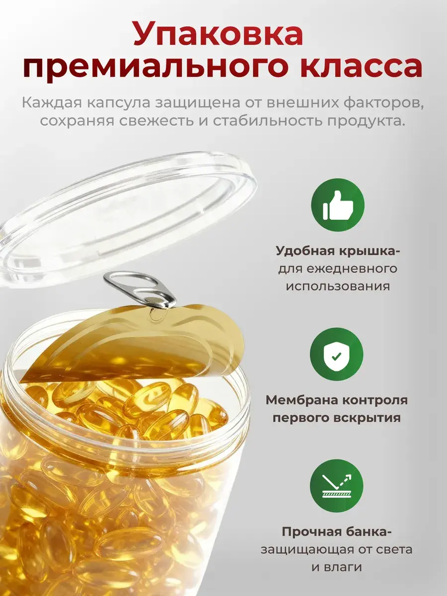 Перед вами чистый концентрированный рыбный жир. Не рыбий (а рыбий жир – это по своей сути устаревший продукт из печени, который в принципе не может быть чистым, потому что он из печени – из перерабатывающего токсины органа).